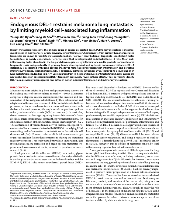 [Citation] Endogenous DEL-1 restrains melanoma lung metastasis by limiting