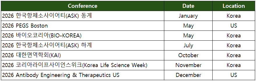 2026년 와이바이오로직스가 참가하는 학회 리스트입니다. 많은 관심 부탁드립니다.