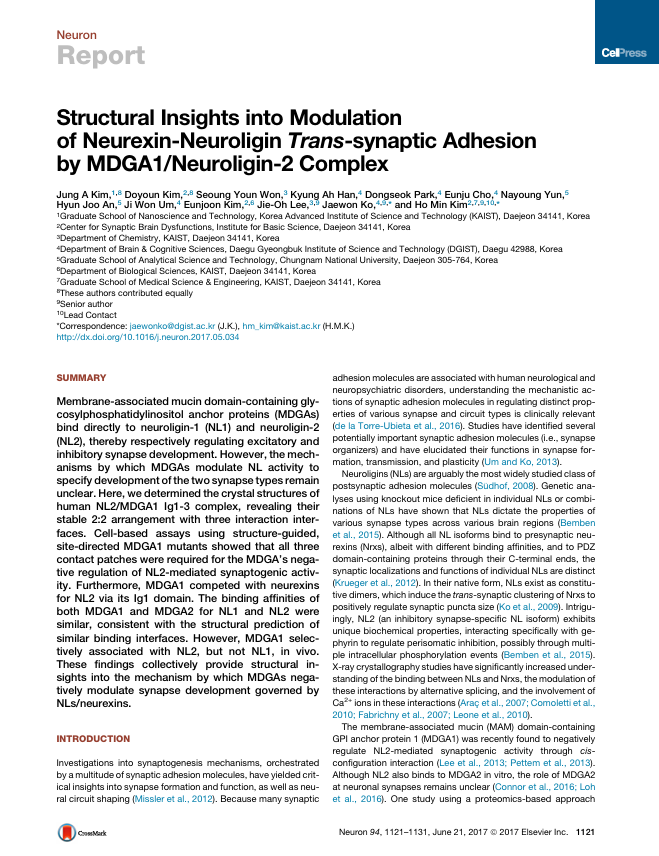 [Citation] Structural Insights into Modulation of Neurexin-Neuroligin Trans-synaptic Adhesion