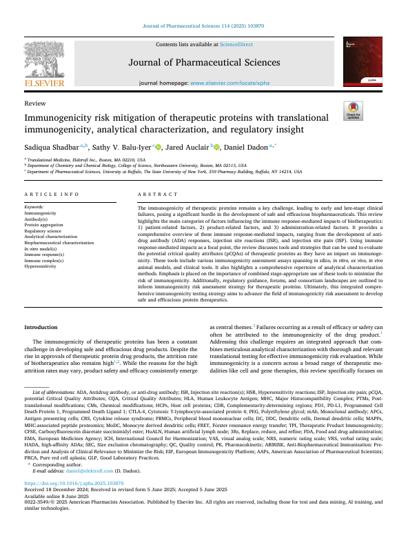[논문] Immunogenicity risk mitigation of therapeutic proteins with translational immunogenicity,