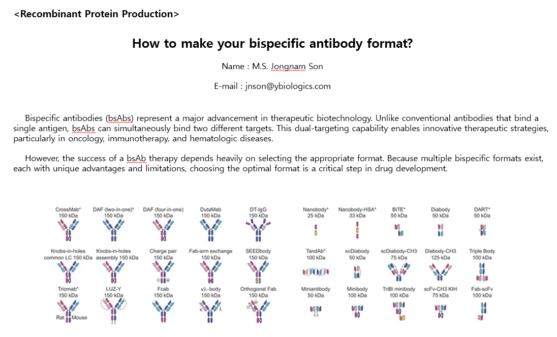 자료실 [Technical Support] Engineering and reformatting your antibody from mAb to bsAb 작성자 : 관리자 등록일 : 2026.03.10조회수 : 18 첨부파일 BsAb Service_Attached File2.pdf 목록 이전글 [Citation] Blockade of Activin Receptor IIB Protects Arthritis Pathogenesis 다음글 [Technical Support] Engineering and reformatting your antibody from mAb to bsAb