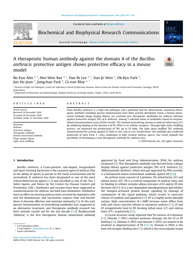 [Citation] A therapeutic human antibody against the domain 4 of the Bacillus anthracis